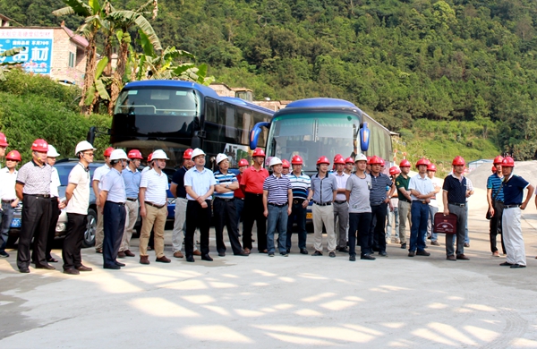 全體參會(huì)人員在參觀G323百色至泮水公路項(xiàng)目現(xiàn)場(chǎng)標(biāo)準(zhǔn)化施工建設(shè)情況并在現(xiàn)場(chǎng)作了交流后,在百色市召開路網(wǎng)項(xiàng)目標(biāo)準(zhǔn)化現(xiàn)場(chǎng)會(huì)暨旱季施工動(dòng)員會(huì)。會(huì)上,各參建單位代表作了匯報(bào)發(fā)言,集團(tuán)公司董事長(zhǎng)朱堅(jiān)和各對(duì)參建單位在路網(wǎng)項(xiàng)目建設(shè)方面所取得的優(yōu)異成績(jī)表示肯定。