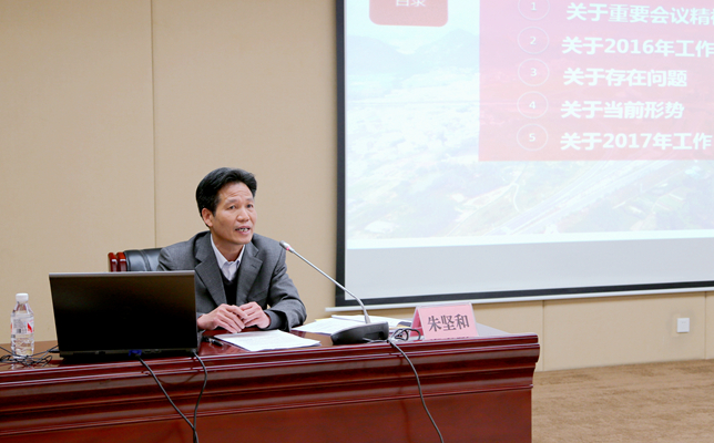 朱堅(jiān)和在講話指出,2017年乃至整個(gè)“十三五”時(shí)期,集團(tuán)公司正處于補(bǔ)齊短板、強(qiáng)基固本、結(jié)構(gòu)調(diào)整、提質(zhì)增效、深化改革、創(chuàng)新驅(qū)動(dòng)、轉(zhuǎn)型升級(jí)、二次創(chuàng)業(yè)的黃金時(shí)期。我們要堅(jiān)持穩(wěn)中求進(jìn)工作總基調(diào),堅(jiān)持牢固樹立新發(fā)展理念,堅(jiān)持以提高發(fā)展質(zhì)量和效益為中心,緊緊圍繞“再造一個(gè)新發(fā)展”宏偉目標(biāo),奮力擔(dān)當(dāng)“開拓更大平臺(tái),發(fā)揮更大作用,承擔(dān)更大責(zé)任”新使命,堅(jiān)持“一二三四”新戰(zhàn)略,堅(jiān)持“一轉(zhuǎn)二提三攻堅(jiān)”新要求,繼續(xù)做好“三篇文章”,全面加強(qiáng)黨的建設(shè),全力推進(jìn)“轉(zhuǎn)型升級(jí)、二次創(chuàng)業(yè)”,努力成為自治區(qū)黨委政府最可信賴的依靠力量。