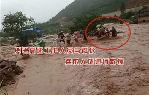7月3日,廣西桂北地區(qū)連日遭受暴雨侵襲,鐘山至昭平高速公路項目多個場站被沖毀,駐地被洪水圍困,項目部立即啟動應急救援預案,積極開展自救工作。在得知附近的源頭鎮(zhèn)群眾被洪水圍困后,項目工區(qū)經理鄒穎林立刻放下整理好的物資,與其他員工一起沖進洪水中拯救鄉(xiāng)民。項目部員工通過手拉手搭建起了生命通道,先后4次下水施救,最終成功轉移30多名受困群眾,其中包括5名小孩。