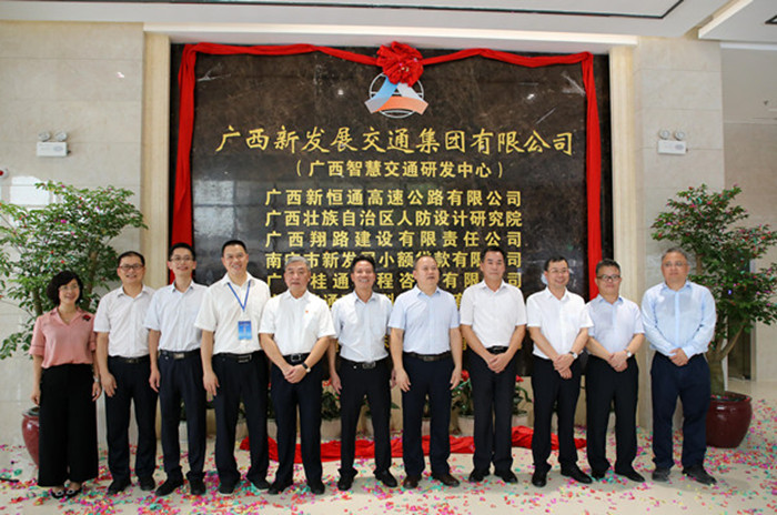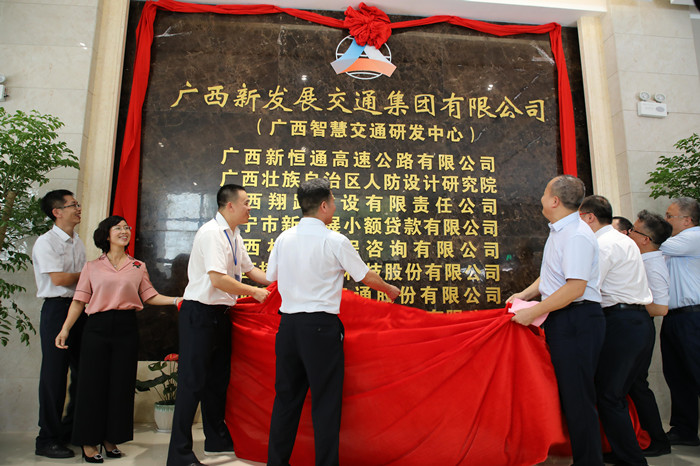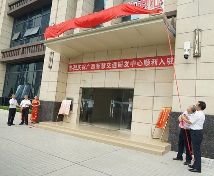 在喜慶熱烈的氣氛中,集團公司領(lǐng)導(dǎo)朱堅和、唐咸秋、翁科、韋慶和共同為廣西智慧交通研發(fā)中心暨入駐單位揭牌。儀式結(jié)束后,領(lǐng)導(dǎo)合影留念,并參觀了新辦公樓。