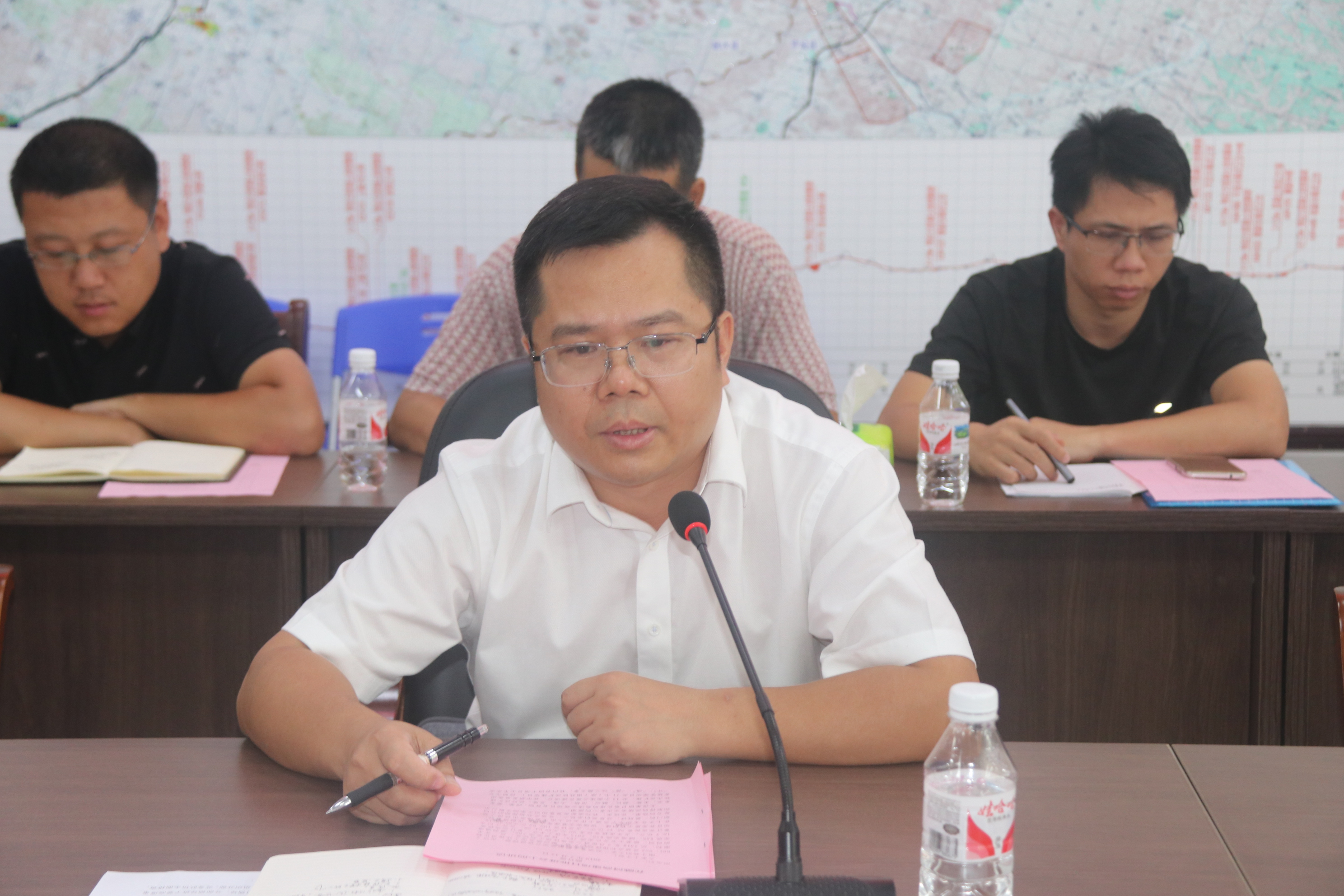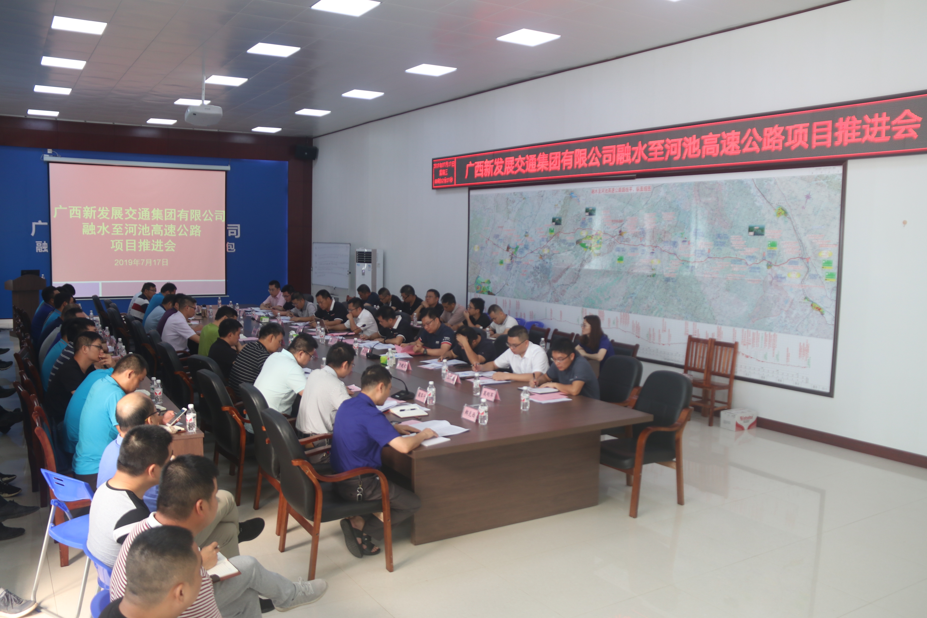 7月17日,廣西新發(fā)展交通集團融水至河池高速公路項目推進會在融河高速總承包項目經(jīng)理部召開。新發(fā)展集團黨委副書記、副董事長、總經(jīng)理、總工程師藍日彥,黨委副書記、董事梁波,路橋集團副總經(jīng)理王鋒,路建集團副總經(jīng)理李戰(zhàn)春,路橋集團路面分公司、長興公司,路建集團一、二公司領導及融河高速各參建分部70余人參會。會議由梁波主持。