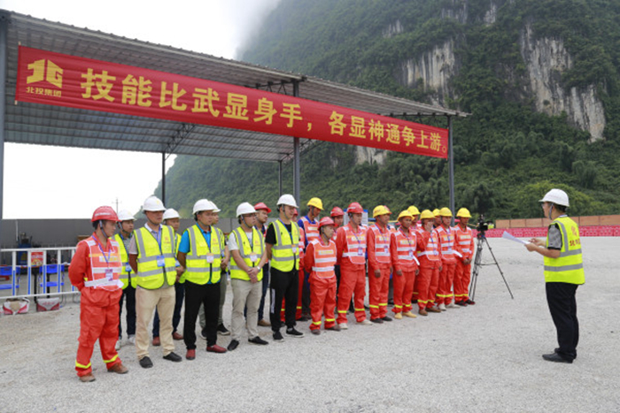 9月10日—11日,自治區(qū)企事業(yè)工會和北投集團(tuán)工會共同聯(lián)合舉辦“當(dāng)好主人翁 建功新時代”慶祝新中國成立70周年“北投工匠”職業(yè)技能競賽。競賽由新發(fā)展交通集團(tuán)、羅城縣人民政府承辦,賽場設(shè)于正在建設(shè)中的融水至河池高速公路,吸引了北投集團(tuán)高速公路建設(shè)項目的10個參建單位共132名基層作業(yè)人員同臺競技。