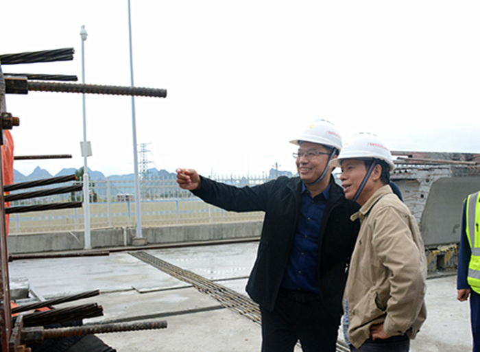 圖為陳劍(左二)在梁場檢查橋梁預(yù)構(gòu)制件情況相關(guān)熱詞搜索: